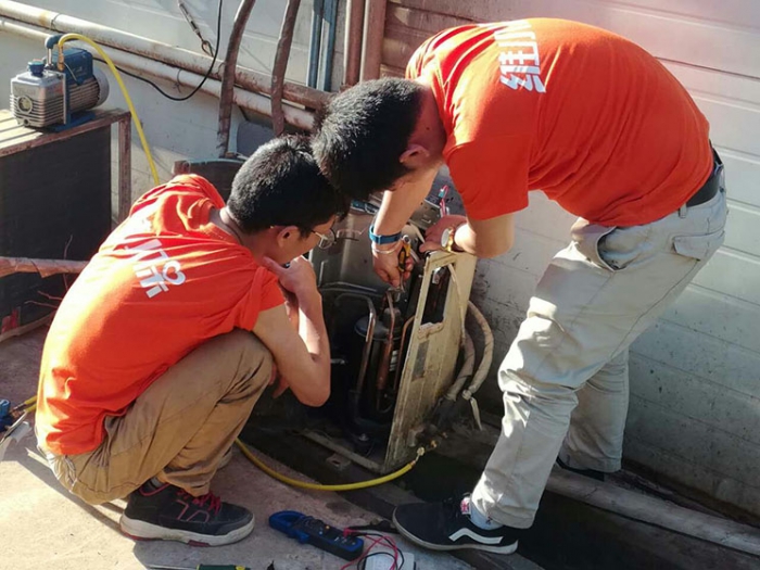 室外机的安装:家用以及中央空调的室外机通过一般是安装于平台上的,也有一些少数打支架挂于墙上的。安装在平台上时,在机器与平台间要做一个减震技术处理,一般是加减震的橡胶垫。而挂在学校墙上时要考虑到建筑墙体的承重和机组的运行系统重量。由于我国家用汽车中央企业空调的重量也是很重,挂于墙上时要打穿墙镙丝来固定进行比较稳定牢固,同时,在机器和支架间也要加橡胶垫来减震。